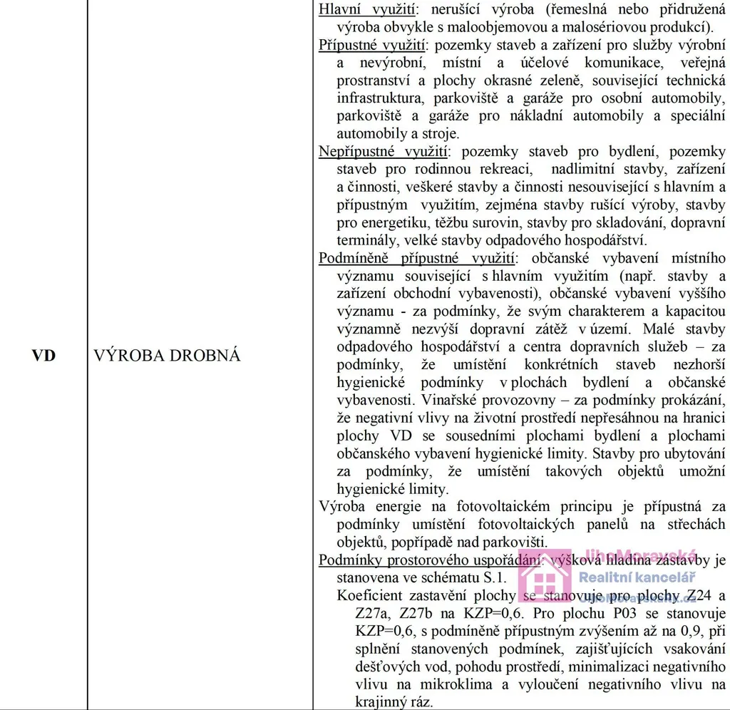 Část parcely č. 1401/271 o ploše cca 1000 m2 je stavební a dle územního plánu spadá do plochy VD - výroba drobná.