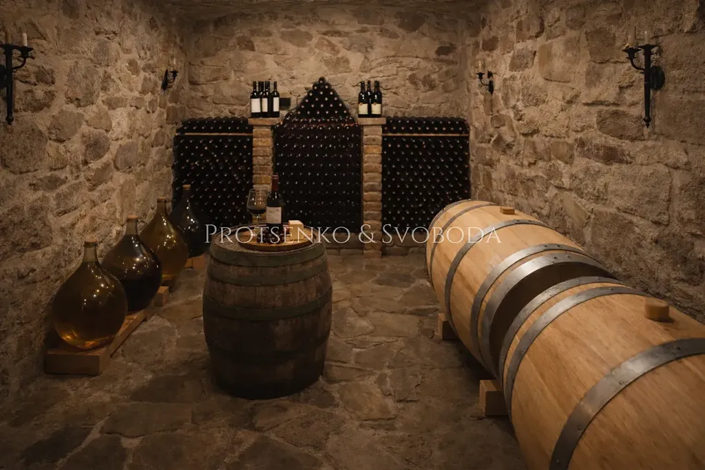 Na pozemku o rozloze 4.576 m² stojí dům (na kn vedeno jako objekt pro výrobu a skladování). Ve skutečnosti je to prostor, kde se tvoří hodnota. V kamenném sklípku zraje víno, v části určené pro výrobu vznikají nové ročníky a celý areál přirozeně propojuje práci, život i odpočinek.
