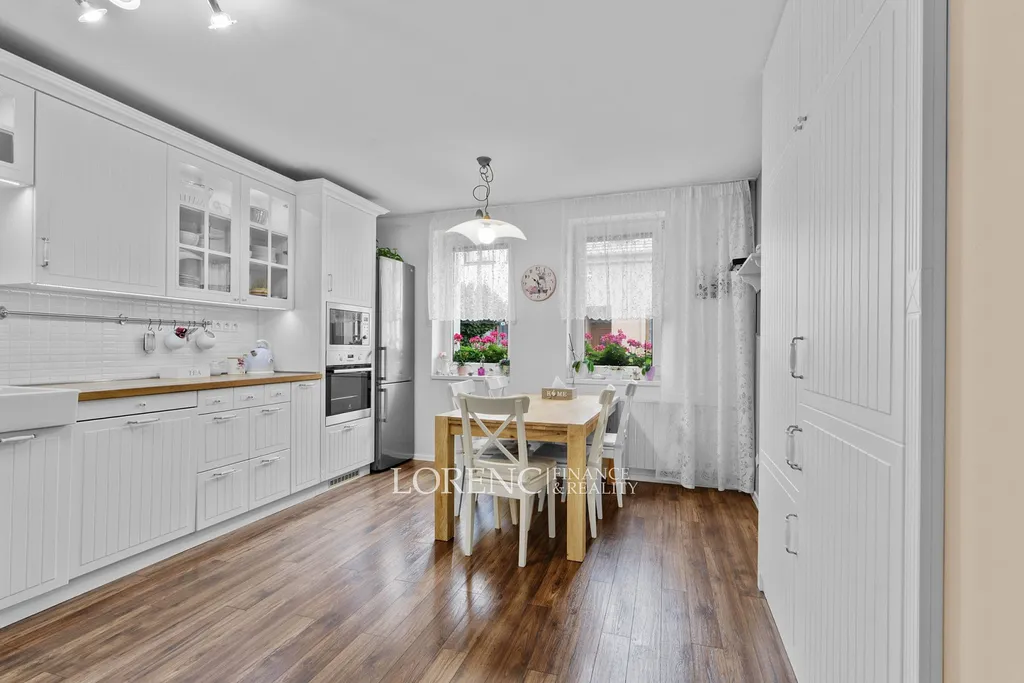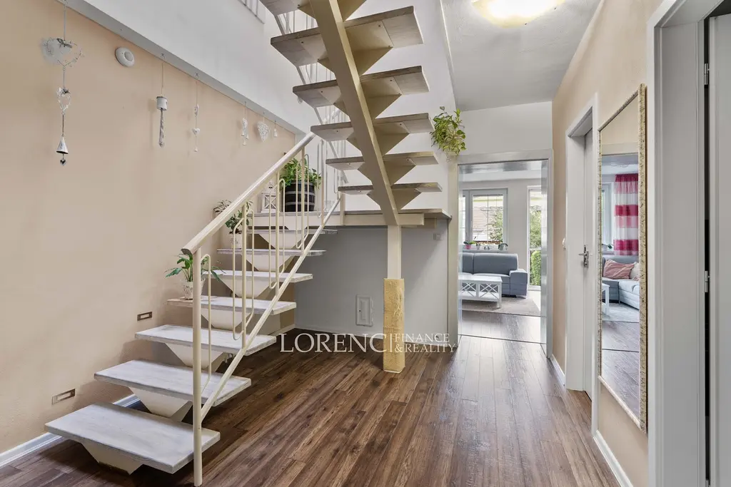 Velkou výhodou jsou 2 koupelny (na každém patře jedna koupelna), komora a prostorný sklep přes 60 m² s přímým vstupem na dvůr. Na pozemku velikosti 171 m² se nachází příjemné posezení s pergolou.