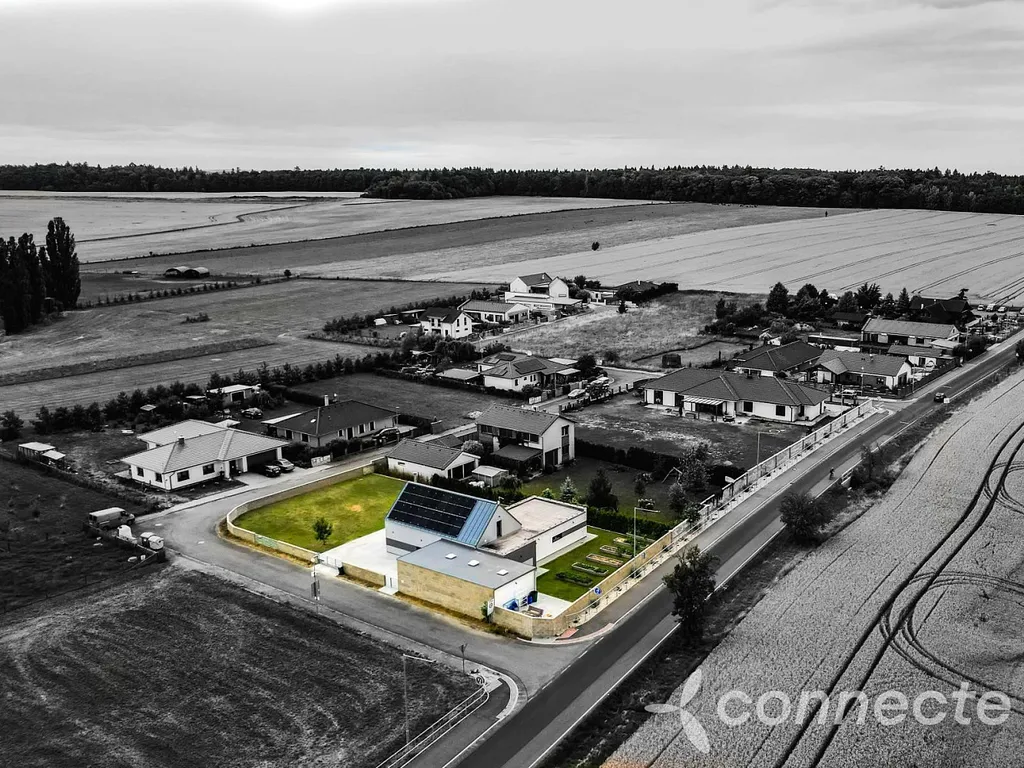 - Napojení na vodovod i kanalizaci, vrtaná studna, elektřina 230/400 V, plyn na hranici pozemku
