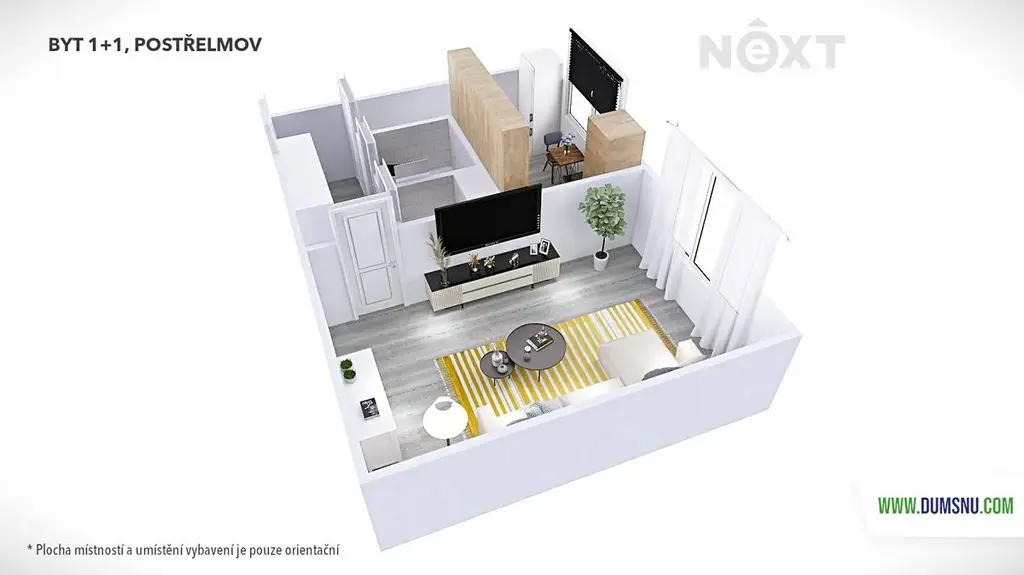 Dispozice nabízí vstupní chodbu s úložnými prostory, koupelnu s vanou, samostatné WC, kuchyni a světlý pokoj orientovaný na východ, kde vás ráno přivítá slunce. Byt se pronajímá včetně elektrického sporáku, pračky a menší lednice – stačí si dovybavit pokoj podle vlastního stylu a můžete ihned bydlet.