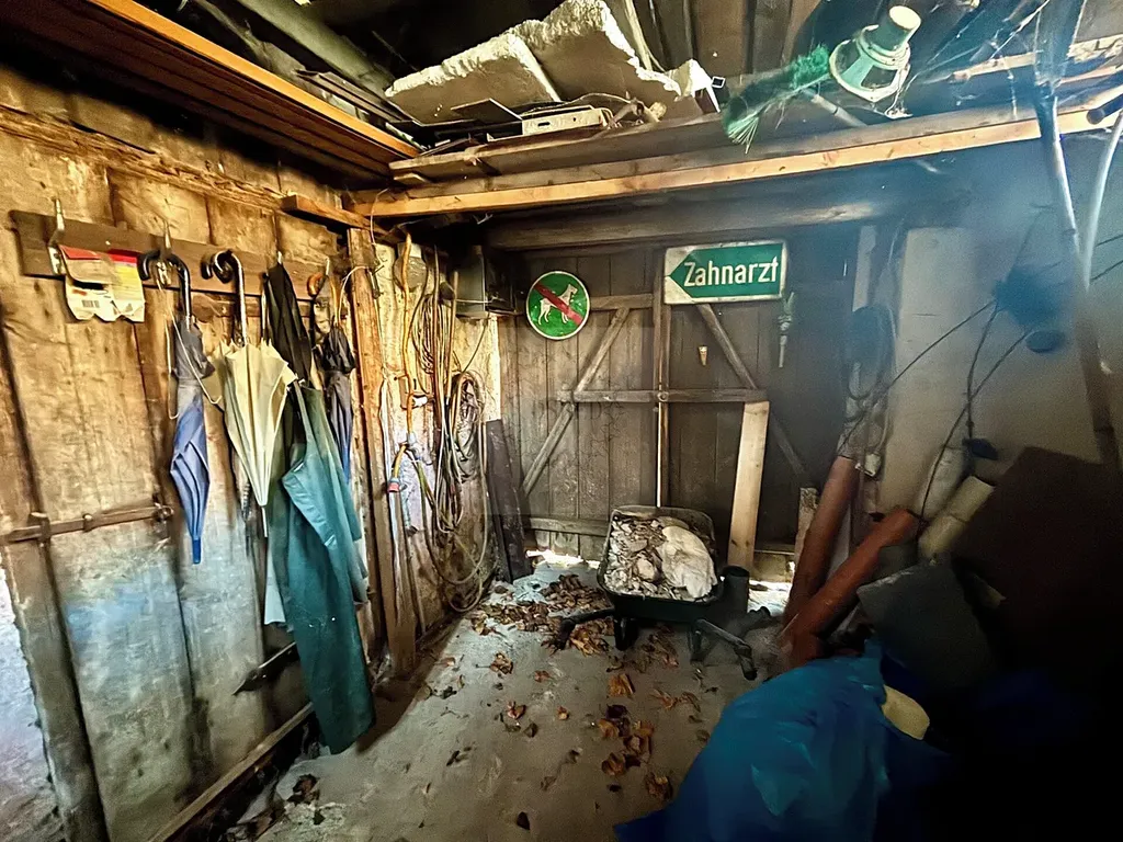 - 1. NP 12 místností: garáž (25,4 m²), sklad s dílnou (45,9 m²), sklad (10,9 m²), chodba (4,5 m²), sklad pro zahr. mechanizaci (12,5 m²), terasa – dvorní trakt (24 m²), sklad pro nářadí (18,10 m²), hala (8,70 m²), kuchyně s jídelnou a obýv. pokojem (28,20 m²), koupelna s vanou a WC (10,80 m²).