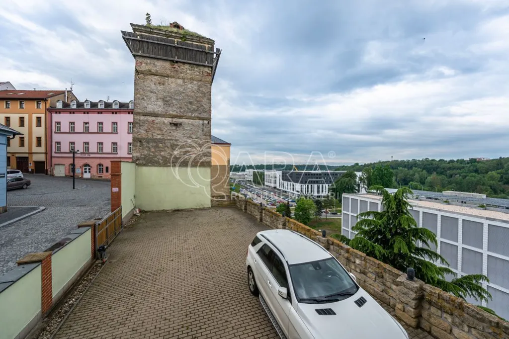 Dům se nachází na hradbách starého města, je cihlový a výhled máte na Česanu. Budete se na ni ale dívat shora, tak vám nebude překážet. K domu je vyhrazené parkování za bránou pro 6 aut. 5 z nich je vyhrazeno pro kanceláře. Z nejnižšího patra lze vejít na soukromou terasu a zahradu. Tyto kanceláře se rozkládají v přízemí a 1 a 2. podzemním podlaží. V domě jsou ještě k dispozici se ještě kanceláře v 2. nadzemním podlaží a byt ve 3. nadzemním podlaží. Ty jsou v současné době také v nabídce k pronájmu a jejich prezentace najdete v těchto odkazech: kanceláře 2.Np. a byt 3.Np. Případně lze pronajmout celý dům. Každý s prostorů vytápí vlastní plynový kotel a má své měřiče vody, elektřiny i plynu.