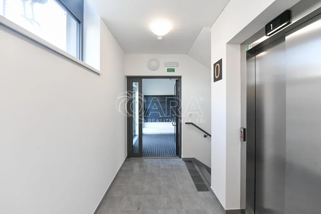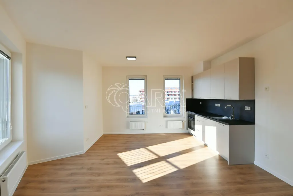 Byt o výměře 33,5 m and sup2; (vnitřní plocha 31,2 m and sup2;) je umístěn v 5.NP novostavby bytového domu z roku 2025, který se nachází v širším centru města. Byt se pronajímá zařízený kuchyňskou linkou včetně vestavěných spotřebičů (varná deska, trouba myčka). Podlaha je v celém bytě plovoucí laminátová, v koupelně a na WC je dlažba. Orientace oken je na západ a sever. Vytápění zajišťuje centrální plynová kotelna v domě. Dům je vybaven výtahem. K bytu dále náleží sklepní kóje (2,3 m and sup2;) a je zde možnost pronájmu garážového stání za 2.000,- Kč/měsíčně, které je umístěné v suterénu.