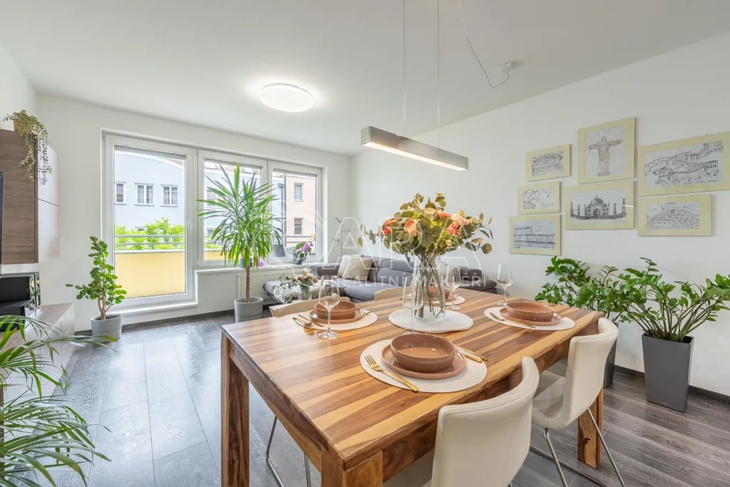 Exkluzivní nabídka prodeje bytu o dispozici 4+kk s lodžií a balkonem, ul. Tyršova, Benešov. Byt je umístěn ve 3. NP bytového domu s výtahem z roku 2012 nacházejícím se téměř přímo v centru města.
