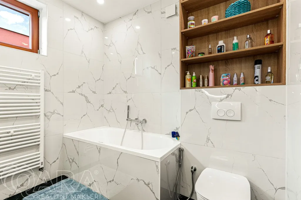 Patrový rodinný dům o dispozici 5+kk a podlahové ploše víc než sto padesát metrů čtverečních nabízí dostatek prostoru pro každého člena vaší rodiny.