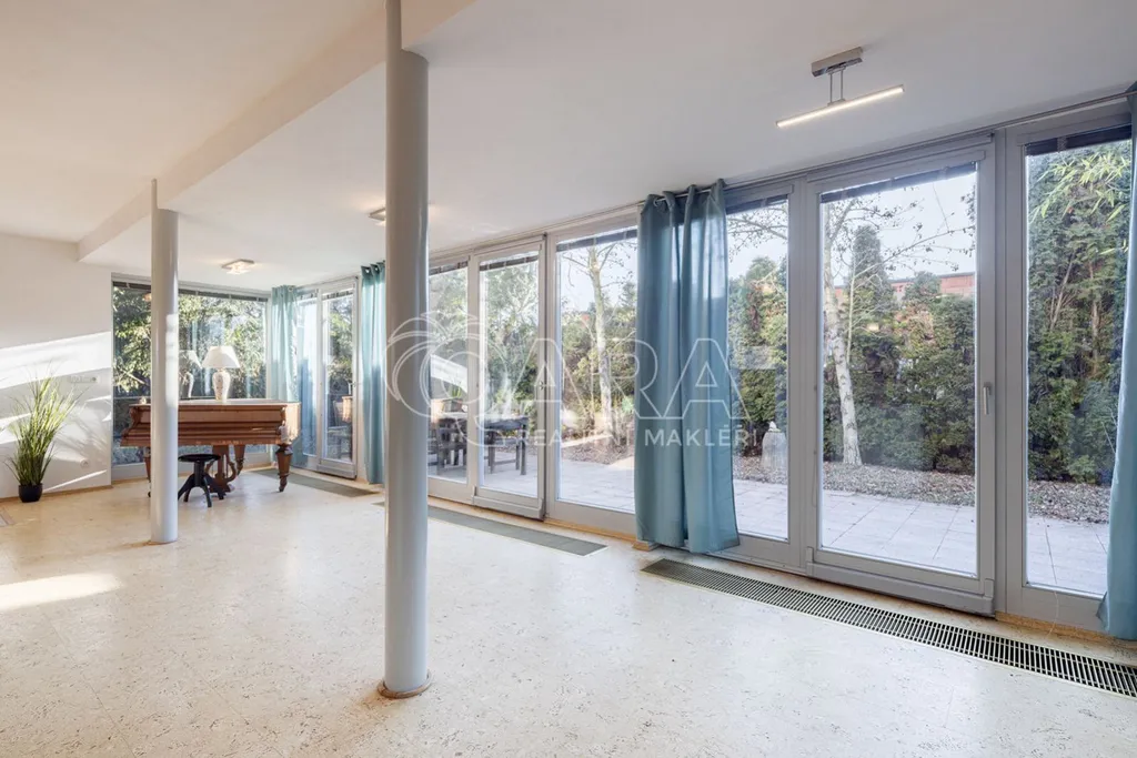 Kromě hlavního obytného prostoru s kuchyní, který se pyšní propojením okny se zahradou po celé délce stěny, najdete v přízemí ještě druhý pokoj, který může sloužit buď jako pokoj pro hosty, nebo z něj lze udělat pracovnu či ateliér.