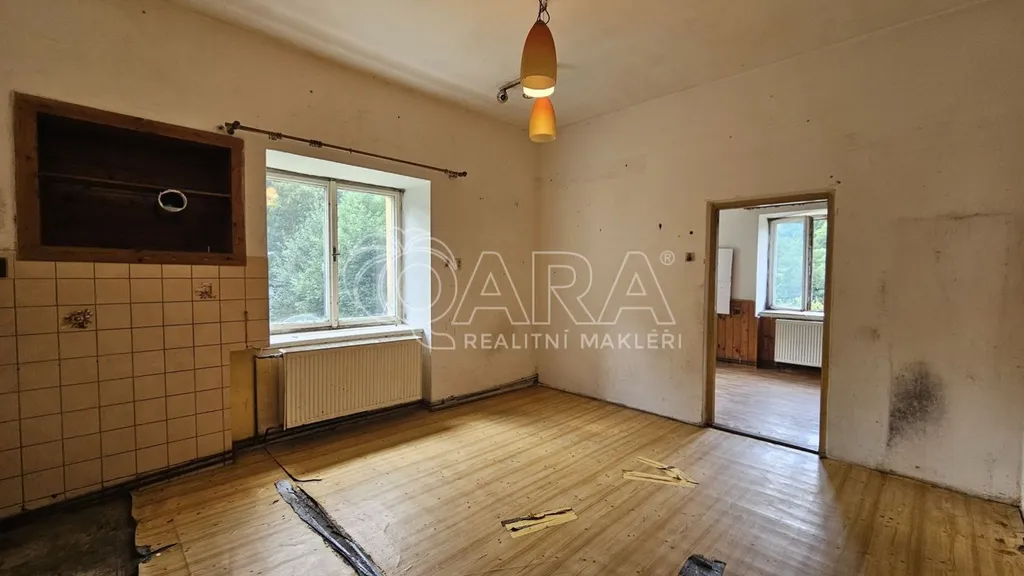Byt se nachází v prvním patře dvoupodlažního domu a je v osobním vlastnictví. Jeho současný stav však vyžaduje rozsáhlou rekonstrukci a láskyplnou ruku nového majitele. To vám na druhou stranu dává jedinečnou příležitost přebudovat si byt podle svých vlastních představ a vytvořit si zde pohodlné trvalé nebo jen víkendové sídlo, které můžete využívat místo klasické chalupy.
