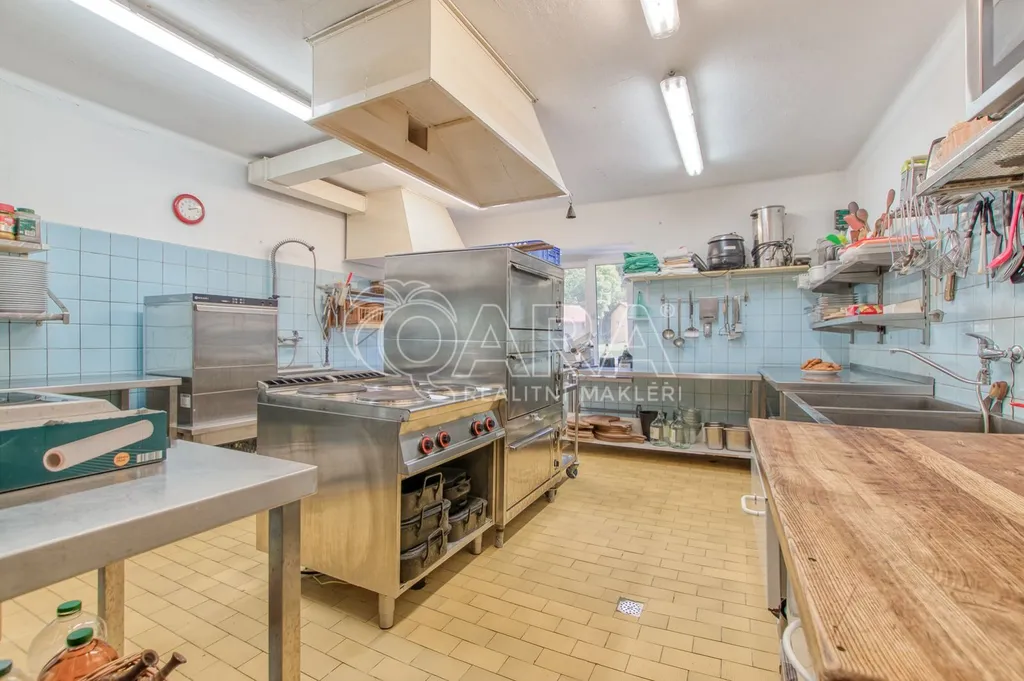 Hlavní budova penzionu o ploše 182 m v přízemí a dalších 110 m v patře prošla částečnou rekonstrukcí. V roce 2010 byla vyměněna všechna okna za plastová s dvojskly, v roce 2015 proběhla kompletní rekonstrukce pokojů včetně elektroinstalace, rozvodů vody a odpadů. V patře se nachází pět pokojů s vlastním sociálním zázemím, s celkovou kapacitou 16 hostů. Přízemí tvoří plně funkční restaurace s barem, kuchyní, sklady, technickým zázemím i klenbovým sklepem. Restaurace má kapacitu 60 míst uvnitř a dalších 30 na venkovní terase.