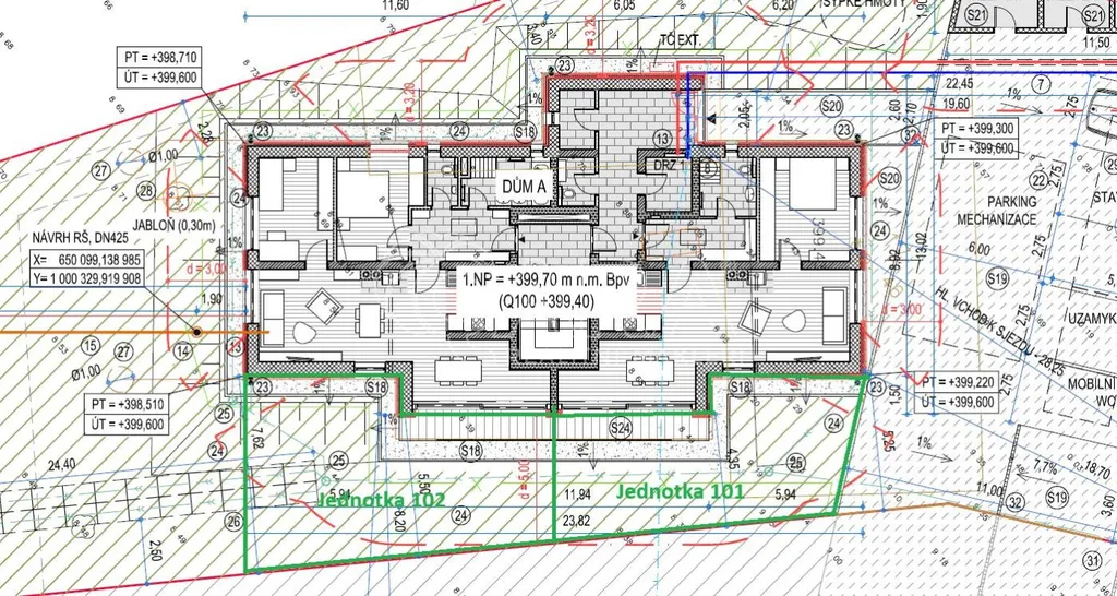 Součástí ceny bytu je parkovací stání a venkovní sklepní kóje umístěná u parkovacích stání.
