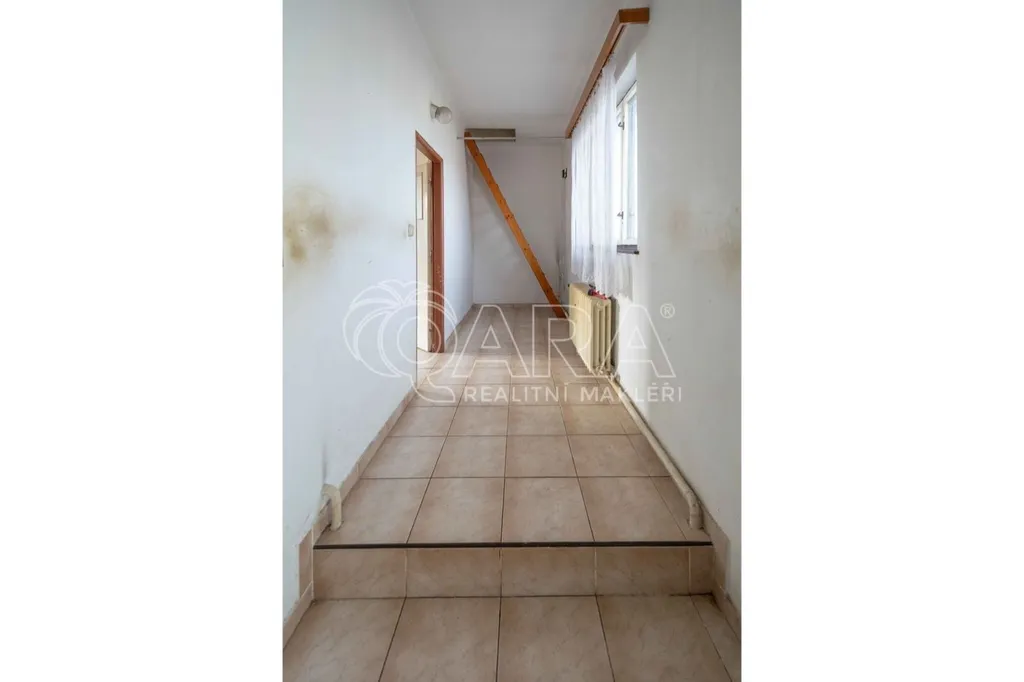 Dispozice přízemí: garáž s dílnou o velikosti 83 m2, sklípek, kuchyně, předsíň a tři pokoje o celkové velikosti 61 m2. Ze zahrady vstup do původní prádelny + další skladové prostory o velikosti 20 m2.
