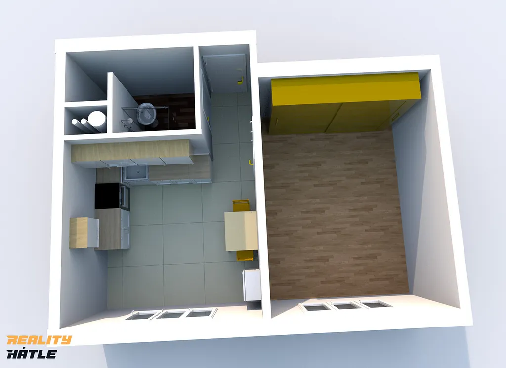 Byt je po částečné rekonstrukci, v jejímž rámci došlo k vybudování nové koupelny a instalaci nové kuchyňské linky s myčkou. K dispozici je také lednice. V pokoji je instalována vestavěná skříň.