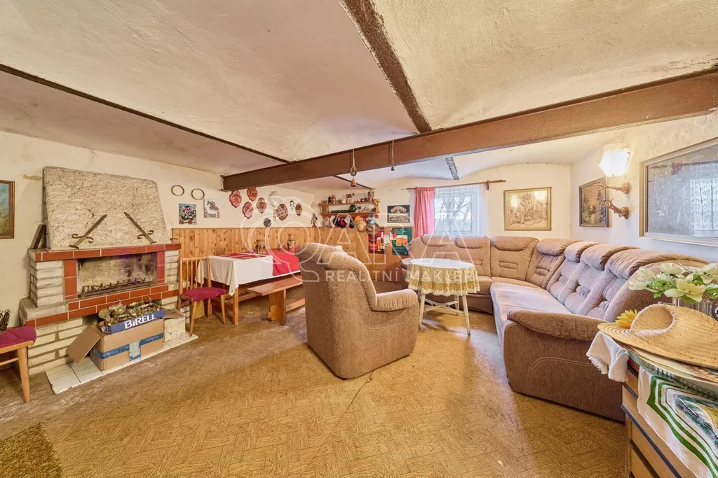 Interiér domu je obyvatelný, zachovává si původní venkovský ráz a příjemnou atmosféru. Obytné místnosti v druhém nadzemním podlaží mají dřevěné stropy a dominantou hlavní obytné místnosti je krb, který podtrhuje chalupářský charakter domu. Dispozice nabízí dostatek prostoru pro úpravy a modernizaci, ať už pro rekreační využití, nebo pro klidné rodinné bydlení.