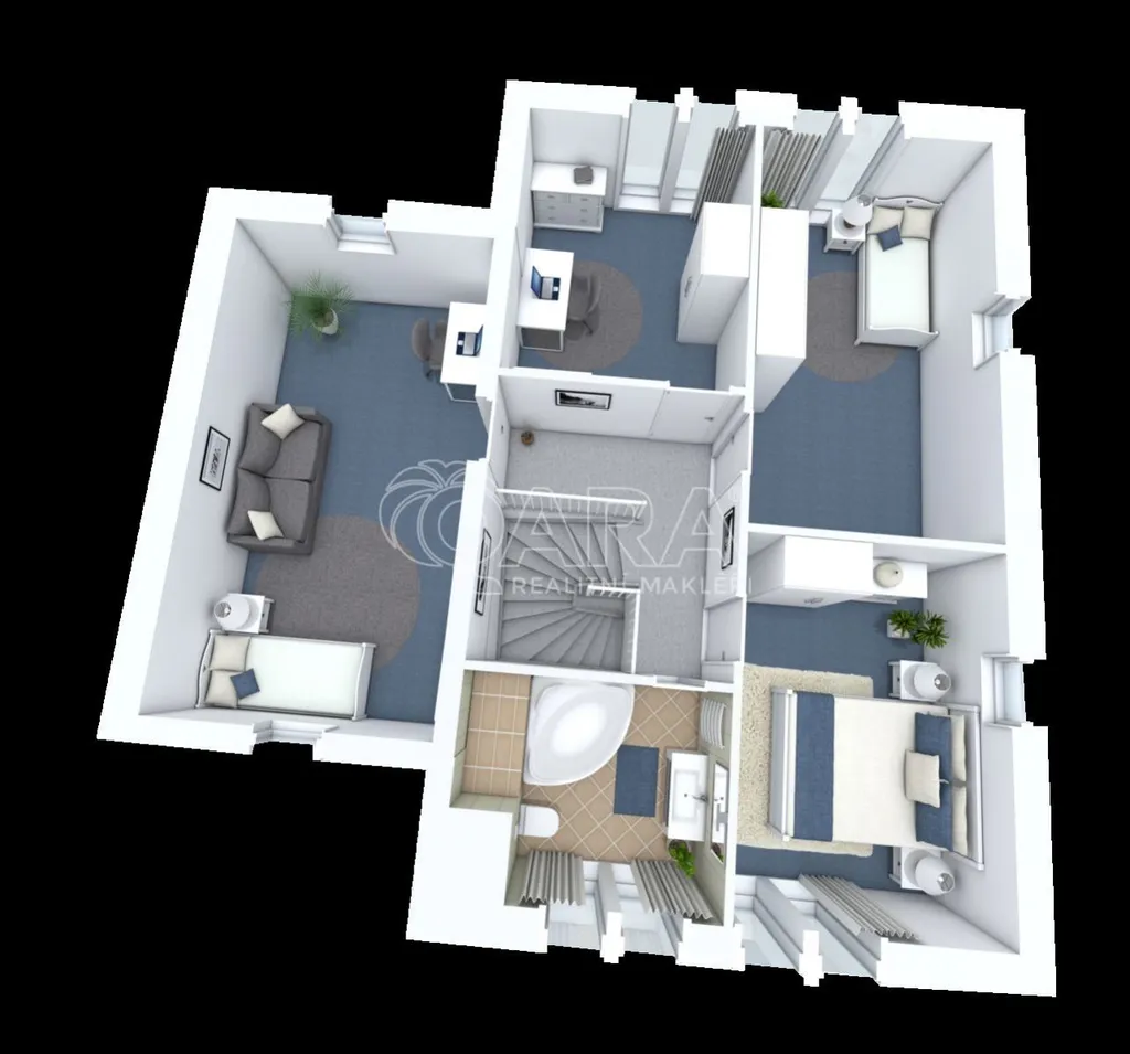Velmi dobře udržovaný dům 5+kk nabízí téměř dvě stovky metrů čtverečních prostoru. Díky panoramatickým francouzským oknům je světlo hlavním hostem v přízemí i v patře. Najdete tu praktické vestavěné skříně a koupelna potěší velkorysým prostorem s rohovou vanou a výhledem na oblohu.