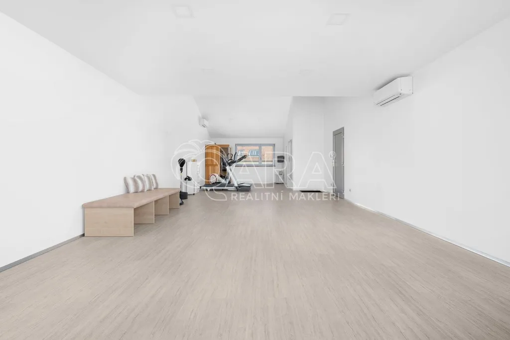Čím je tedy toto sídlo tak unikátní? Mezi největší přednosti tohoto jedinečného domu patří bezesporu jeho dispozice. Po nenáročné úpravě (dodělání příčky a kuchyňské linky) mohou v domě vzniknout dokonce 3 samostatné bytové jednotky: v přízemí jeden byt 3+kk s podlahovou plochou 66 m2 a v patře 2 bytové jednotky o velikosti 2+kk s podlahovými plochami 64 m2 a 44 m2. Nechybí tu prostorná garáž, bazén, 2 kuchyňské linky a 3 koupelny se sprchovým koutem a toaletou. Podlahová plocha celého domu nabízí úctyhodných 240 m2.