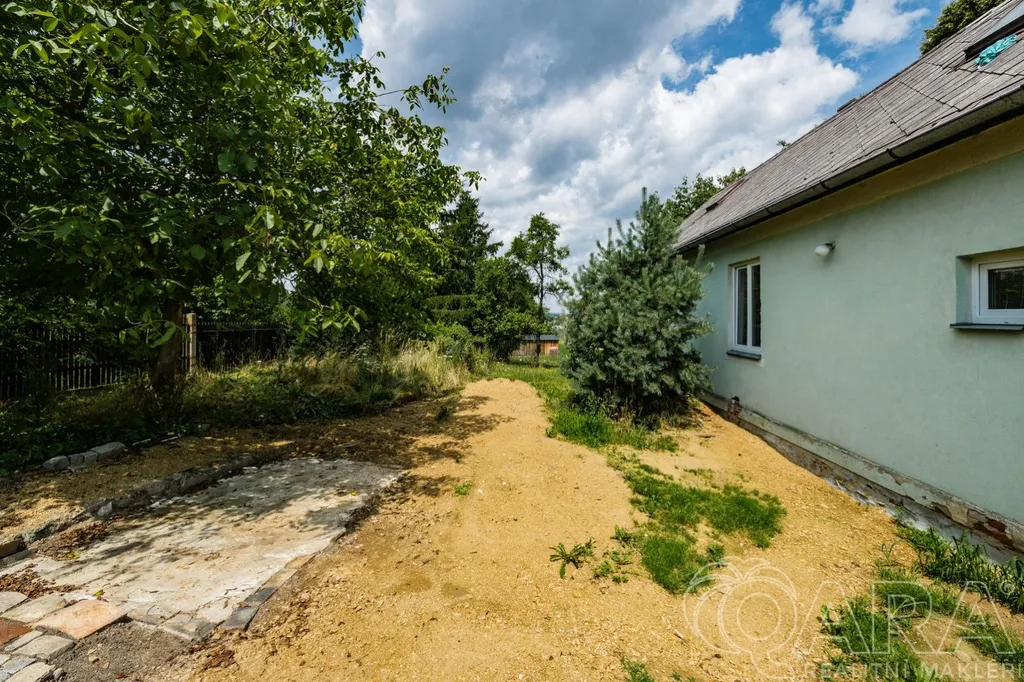 Na pozemku se nachází rodinný dům s užitnou plochou 99 m a garáží 17 m. Naleznete zde chodbu, obývací pokoj s kuchyní, ložnici a pokoj se schodištěm. V druhém patře se pak nachází dva pokoje s chodbou a úložným prostorem. Dům je vytápěn kamny a pecí na tuhá paliva, disponuje plastovými okny kromě střešních oken a vlastní televizní anténou. Do domu je zavedena elektrická energie, přívod vodovodního řádu se nachází uprostřed zahrady a není zaveden do domu.