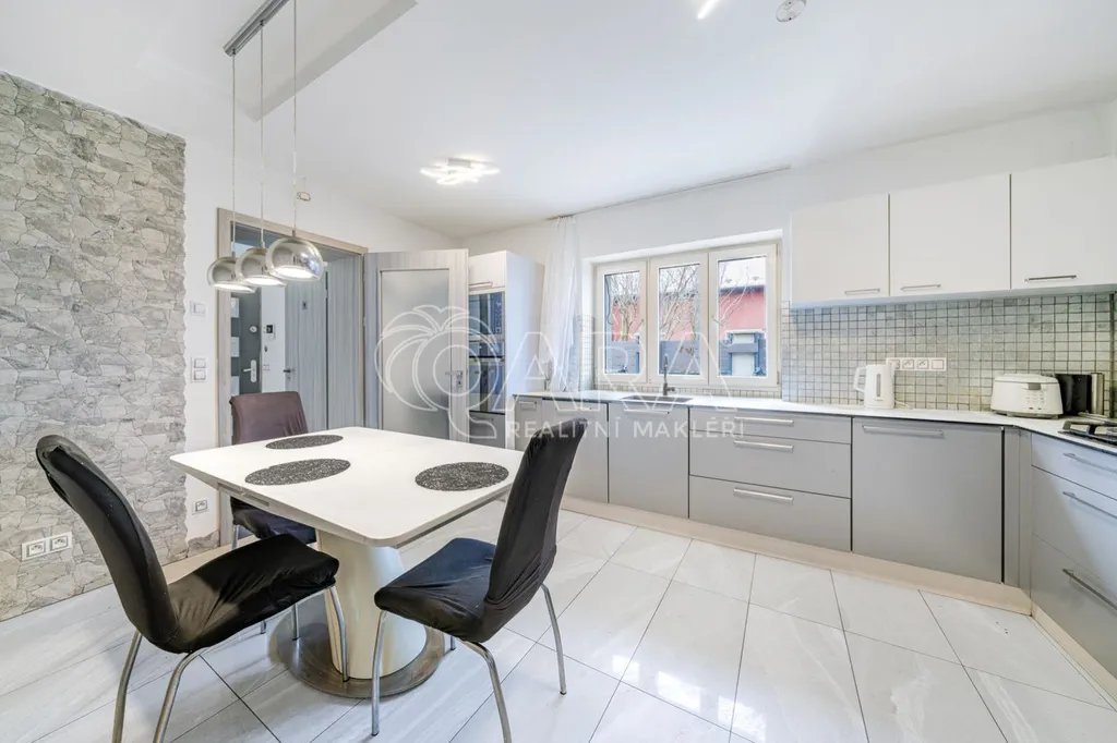 Samostatná kuchyň je plně vybavená a stejně tak i ostatní místnosti - veškerý nábytek je součástí prodeje, takže můžete bydlet hned bez dalších investic.