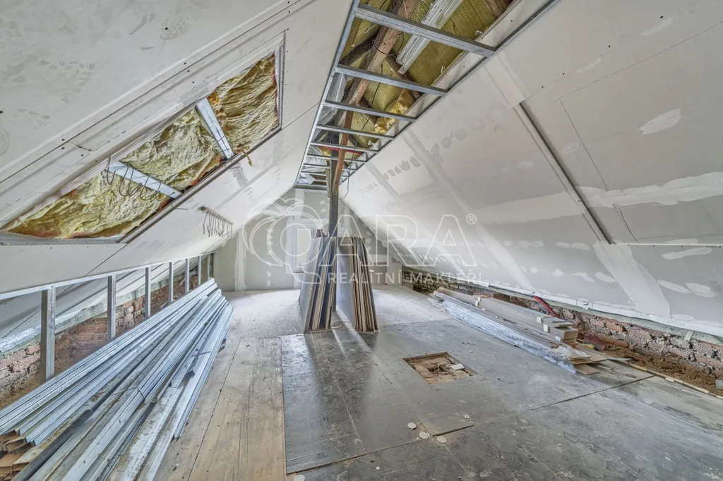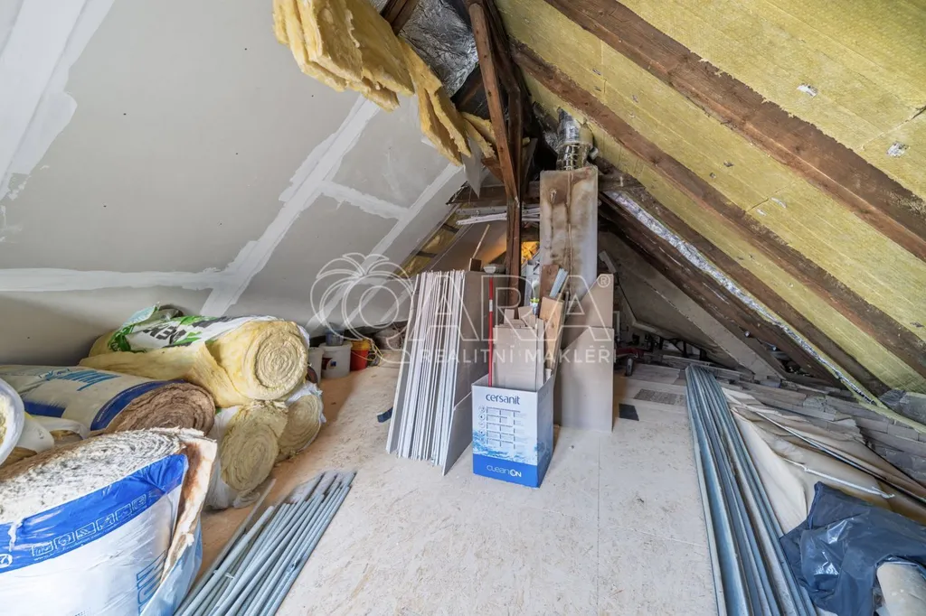 V podkroví na vás čeká velkorysý prostor pro vlastní realizaci ať už sníte o dalších ložnicích, pracovně, ateliéru nebo herně. Možností je víc, než se na první pohled zdá. Plocha podkroví je 86 m2, při měření 1,2 metru nad zemí to dělá asi 65 m2.