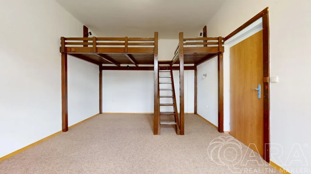 Pronájem světlého bytu 2+kk o výměře 49 m po kompletní rekonstrukci, umístěný v 1. patře cihlového domu bez výtahu. Byt má vestavěné patro, které příjemně rozšiřuje obytný prostor a dodává interiéru vzdušnost. Je zařízen novou kuchyňskou linkou včetně lednice, sporáku, k dispozici je také pračka a vestavěná skříň na chodbě. Na podlahách je kombinace dlažby a koberce. Vytápění i ohřev teplé vody zajišťuje plynový kotel. Dům má k dispozici zahradu a nachází se v klidné lokalitě kousek od vlakového nádraží Milevsko. Byt je volný ihned,