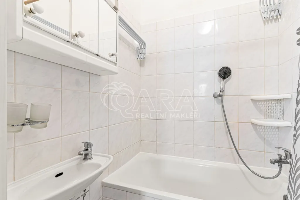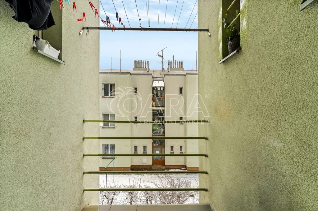 Dispozice 1+1 působí díky otevřenému řešení vzdušně a prakticky, kuchyně má dostatek místa i pro jídelní kout. Všechna okna jsou orientována na východ, což zajišťuje příjemné ranní světlo a klid byt je zcela bez ruchu z ulice.