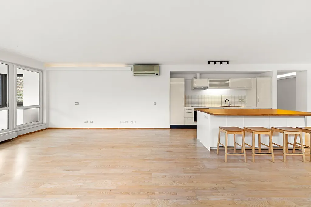 Dominantou bytu je prostorný a světlý obývací pokoj 67,58 m2 s kuchyňským koutem, který je ideálním místem pro každodenní život i reprezentaci. Byt je promyšlený do posledního detailu a nabízí velkorysé množství úložných prostor.