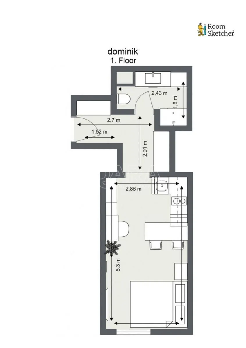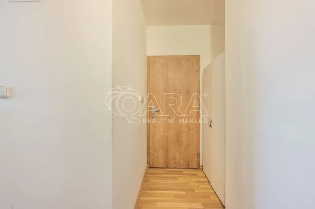 Byt je ve velmi dobrém stavu a má praktické uspořádání menší rohová kuchyň s barovým pultem je propojená s obývacím pokojem. Dále je zde chodba ze které se dostanete do koupelny se sprchovým koutem a WC. Byt je připravený na bydlení či pronájem, bez nutnosti investic. Velkou výhodou je klimatizace, podlahové vytápění v koupelně a vybavení bytu (viz. fotografie) které je součástí prodeje.