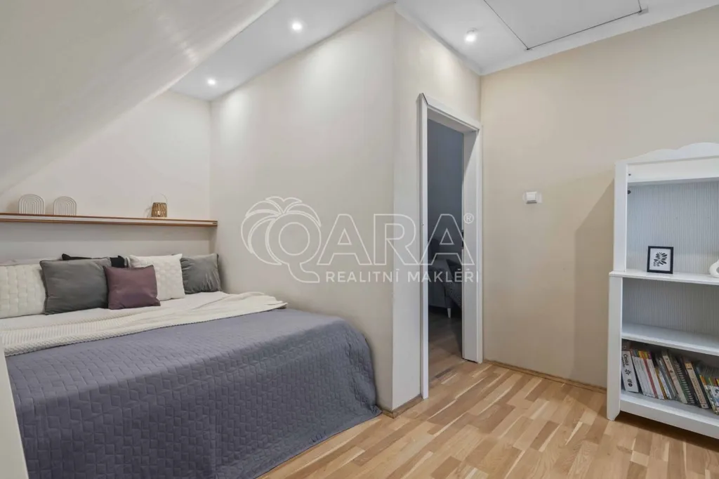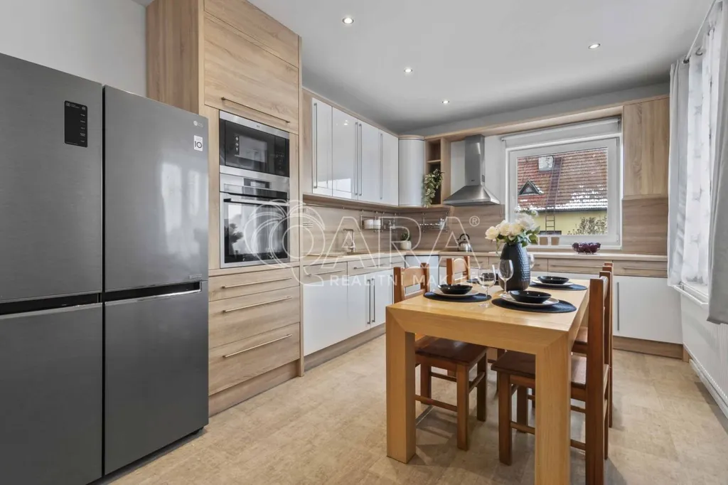 Ve výhradním zastoupení majitele nabízíme k prodeji cihlový rodinný dům s garáží a zahradou v Říčanech u Prahy. Nemovitost se nachází v klidné ulici města. Celková vnitřní výměra domu činí cca 137 m2 včetně technické místnosti s dílnou a půdního prostoru. Dvoupodlažní dům má aktuální dispozici 3+kk (kterou lze případně rozšířit), dvě koupelny a dvě toalety.