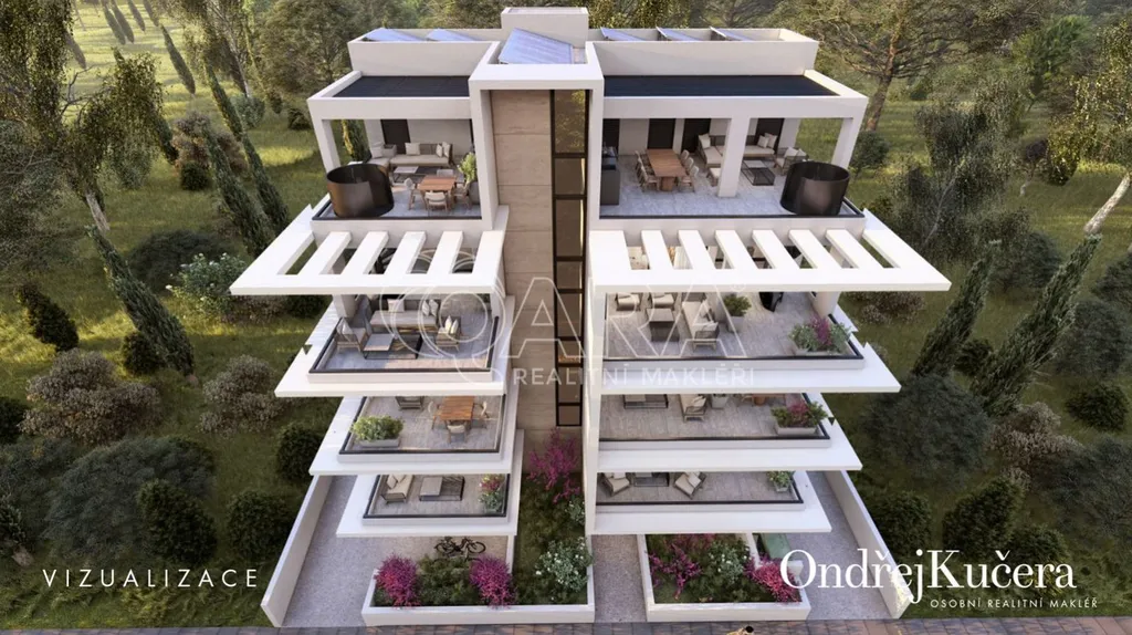 Tento apartmán 3+kk s celkovou výměrou 176,5 m se nachází ve třetím patře a má vše, co potřebujete k pohodlnému životu u moře. Samotná obytná plocha 79,1 m působí útulně a prakticky i díky dvěma koupelnám. Skutečným bonusem je soukromá střešní nekrytá terasa 40,4 m s velkým úložným prostorem a samostatnou toaletou (19,4 m) , kam se dostanete po točících schodech ze své 34,2 m velké terasy s přístupem z obývacího pokoje. Jde o prostory, kde můžete snídat, večer grilovat a po celý den jen tak odpočívat. Navíc získáte vlastní úložný prostor 3,4 m a jedno garážové stání v přízemí domu.