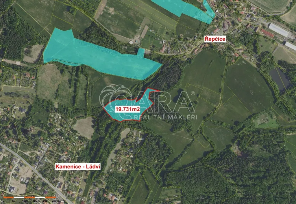 Pozemky jsou umístěny mezi částmi obce Kamenice - Ládví a Velké Popovice - Řepčice.