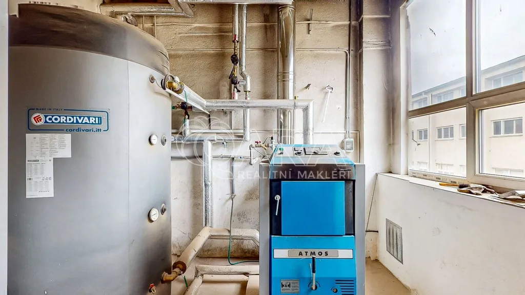Nemusíte řešit nákladné rekonstrukce, klíčové technologie jsou již hotové. K dispozici je nová elektroinstalace s dostatečnou kapacitou (nová rozvodna příkon 3 × 160 A, sazba C02D), nové rozvody vody i kanalizace napojené na čističku v areálu. O vytápění se stará nový kotel na tuhá paliva s možností využití vlastních briket, přičemž systém je stavebně připraven i na případné napojení tepelného čerpadla. Stropy s výškou 3,8 m jsou zateplené foukanou izolací (2530 cm) pro lepší tepelný komfort, přičemž zbývá dokončit jen zhruba třetinu haly. Objekt má nová plastová okna a fasáda je připravena na zateplení (ideální pro čerpání dotací v kombinaci s fotovoltaikou).