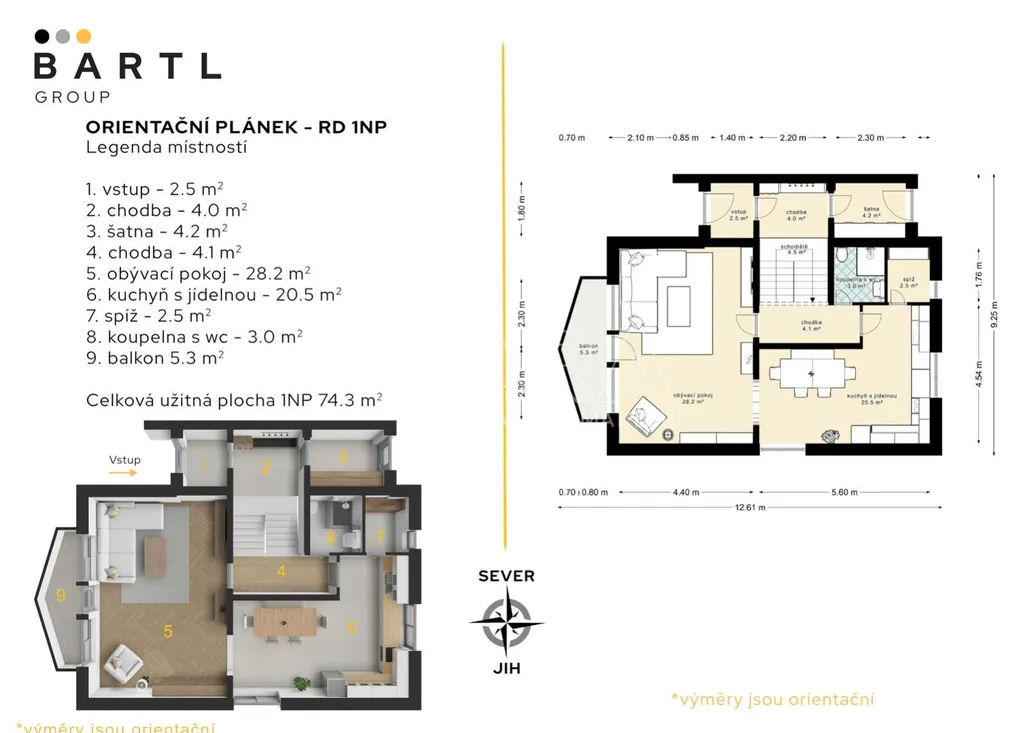 Měsíční nájemné činí 30.000,- Kč. Veškeré energie (elektřina, plyn, voda) se přepisují na nájemce. Při převzetí domu se skládá vratná kauce ve výši 50.000 Kč. Jednorázová provize RK ve výši jednoho nájmu se hradí při rezervování domu a je hrazena nájemcem samostatně. Nájemní smlouva bude uzavřena na dobu určitou s možností prodloužení.