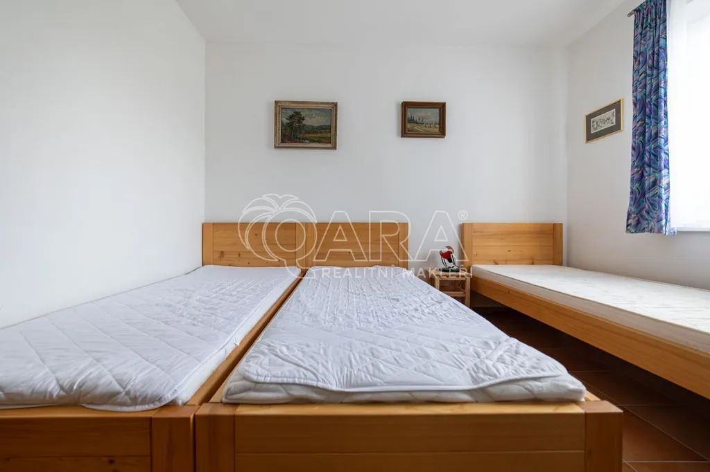 Nemovitost lze rozdělit a samostatně tak můžete koupit jen rodinný dům s pozemkem 750 m2, nebo samostatně jen dům s apartmány a nebo samostatný jeden apartmán.