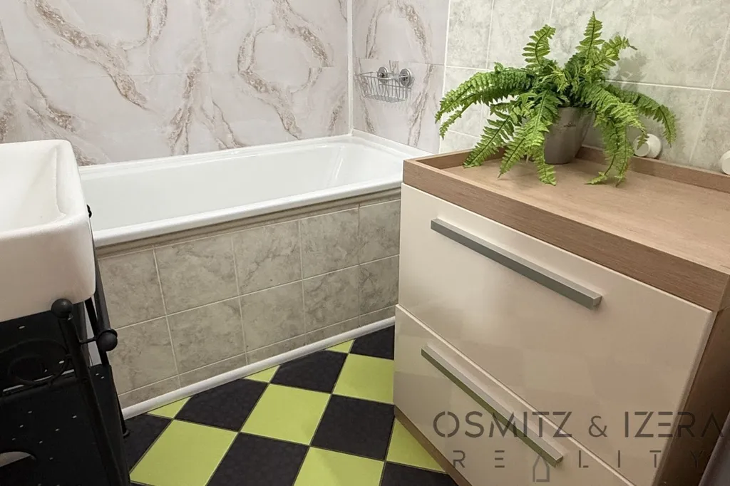 Byt se skládá z velkého obývacího pokoje spojeného s kuchyňským koutem a se vstupem na balkon. V kuchyně je velká kuchyňská linka se spotřebiči a je zde i prostor na pracovnu. Prostorná vstupní chodba se skříní dále pokračuje ke koupelně s vanou, samostatným WC a komorou, kde je připojení na pračku. Dvě ložnice jsou orientované na západ, jsou zde plastová okna se žaluziemi. Byt je kompletně zařízen nábytkem a je ihned k nastěhování. Lodžie je orientovaná na východ do vnitrobloku s dětským hřištěm. Momentálně probíhá na domě zateplení fasády a v rámci toho zasklívání balkonů.