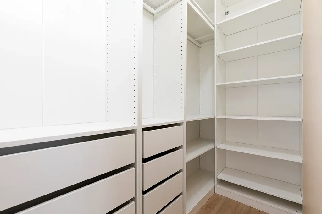 příprava na vestavnou pračku, prostor pro lednici a praktická potravinová skříň
