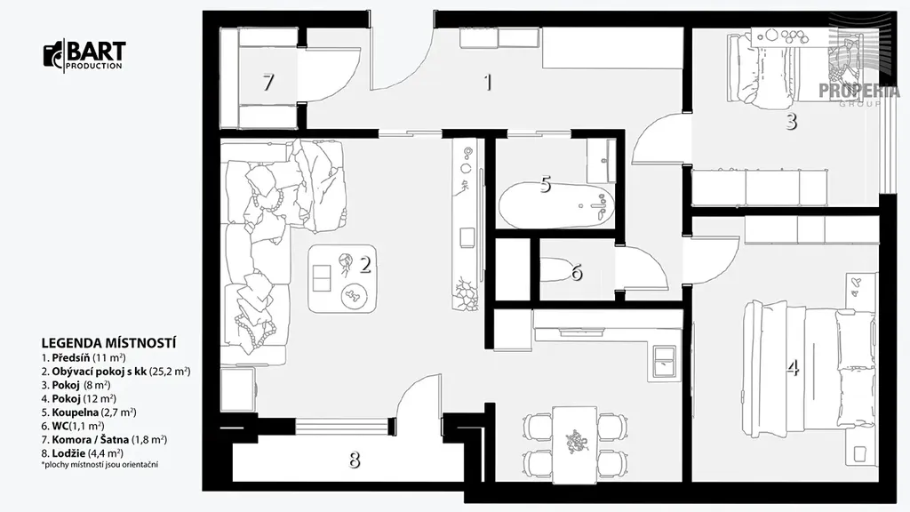 • Bezpečí: Byt je osazen kvalitními bezpečnostními dveřmi.