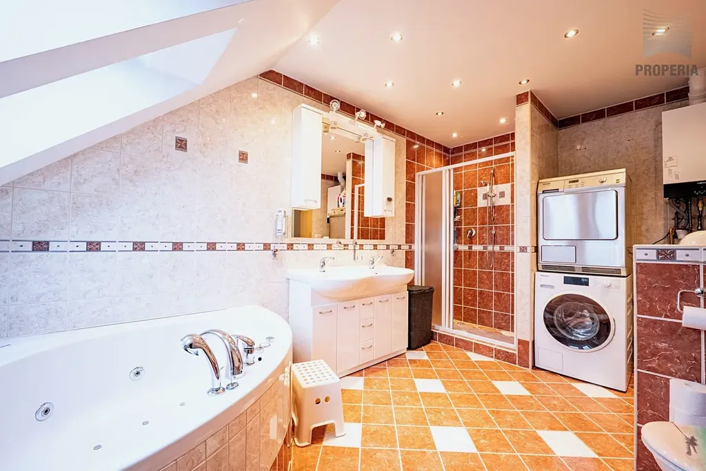Rodinný dům o čtyřech pokojích nabízí promyšlené uspořádání na dvou podlažích – přízemí a obytném podkroví. Nepodsklepená cihlová stavba působí kompaktně a zároveň poskytuje dostatek místa (užitná plocha 184,4 m²) pro každodenní život i zázemí domácnosti. Samozřejmostí je garáž pro dva automobily, doplněná o prostorný sklad, kam se vejde vše od sportovního vybavení až po sezónní věci.