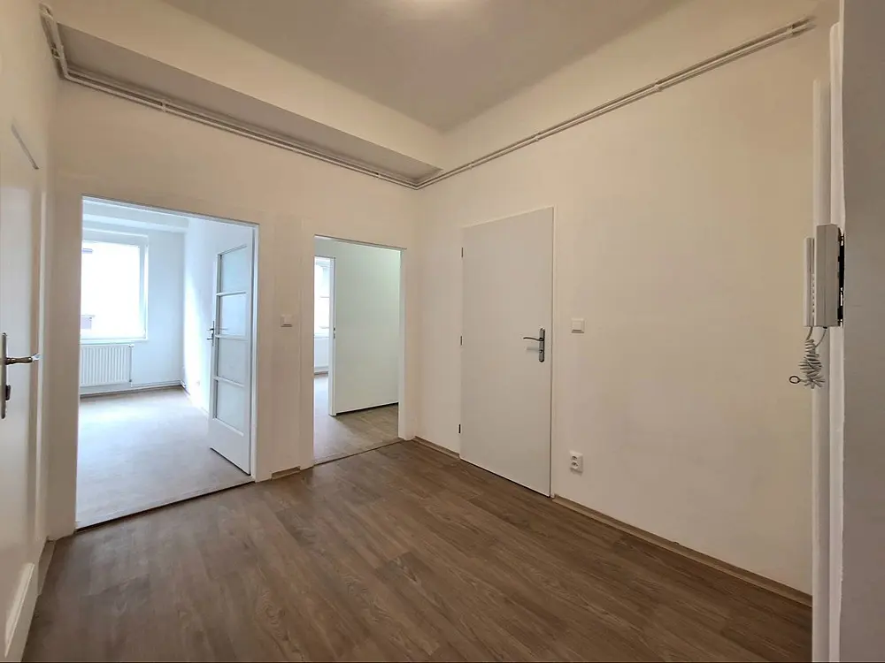 Jedná se o prostorný cihlový byt o celkové ploše 60 m², umístěný ve 3. patře cihlového domu bez výtahu.