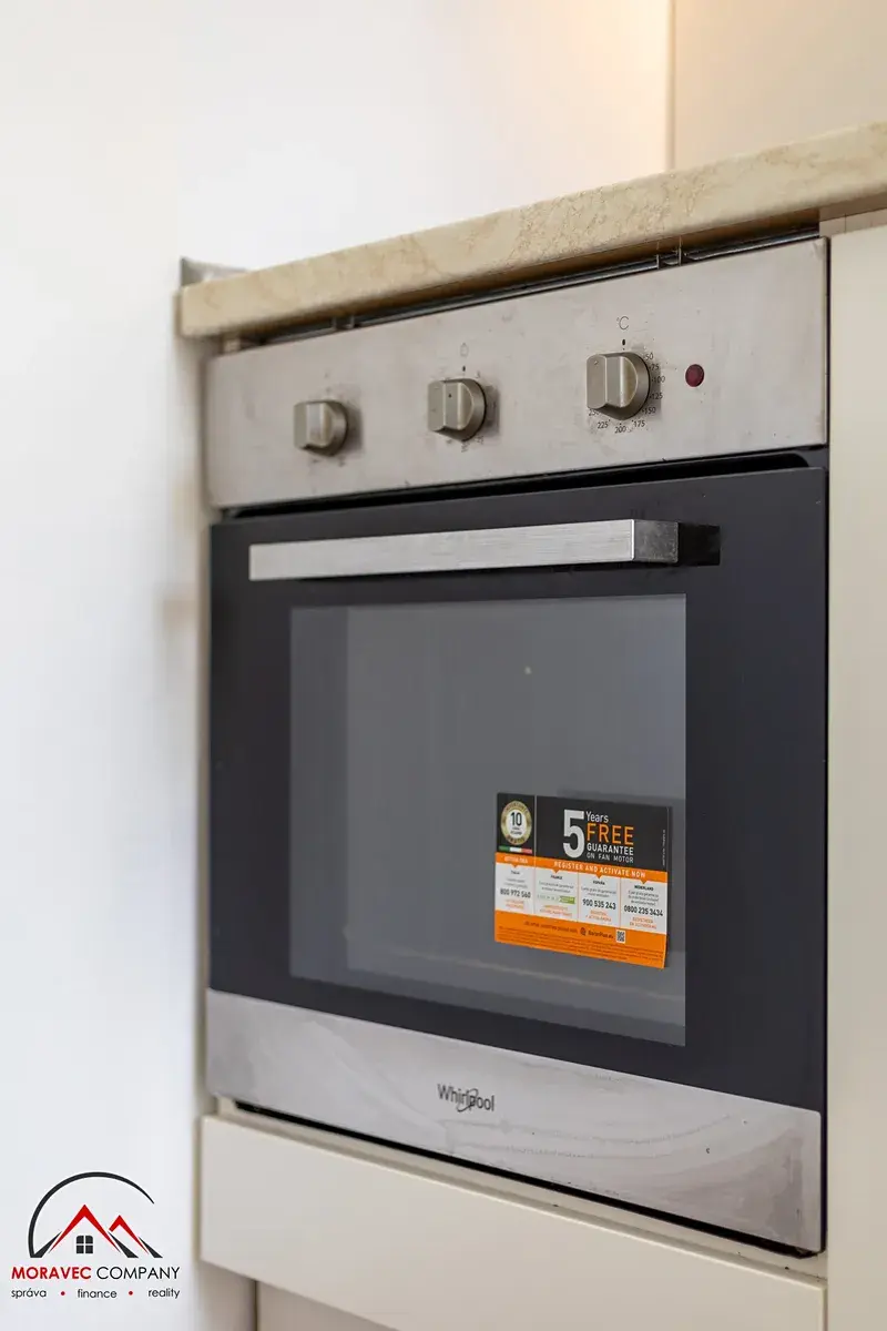 V bytě je pokoj s kuchyňským koutem a další samostatný pokoj. Vybavení bytu zahrnuje kuchyň s elektrickou troubou, varnou deskou a digestoří. Koupelna je vybavena vanou, WC je samostatné. Vytápění a ohřev vody je na elektřinu.