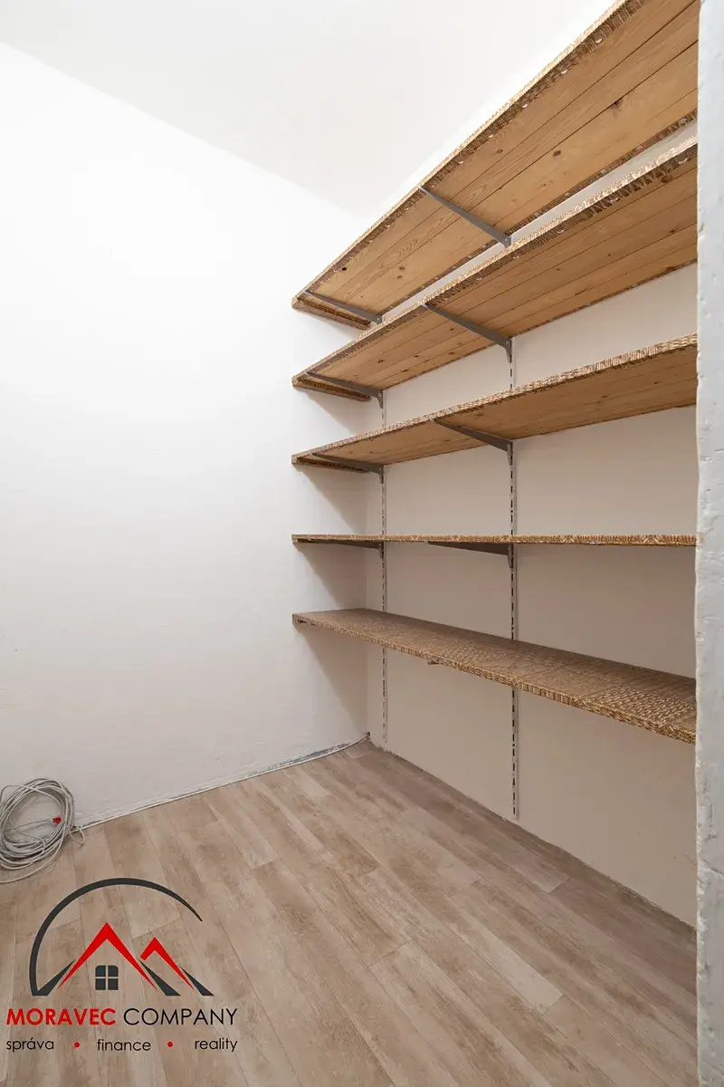 Vybavení bytu zahrnuje kuchyň s elektrickým sporákem. Koupelna je vybavena sprchovým koutem a toaletou. Vytápění a ohřev vody je zajištěn dálkovým teplem. Výhodou bytu je prostorná komora o velikosti 2,7 m², která nabízí široké možnosti využití. Může sloužit jako praktická šatna, skladovací prostor pro sezónní věci nebo třeba jako místo pro uskladnění sportovního vybavení či domácího úklidového zázemí. Tento prostor lze přizpůsobit přesně vašim potřebám a představám.