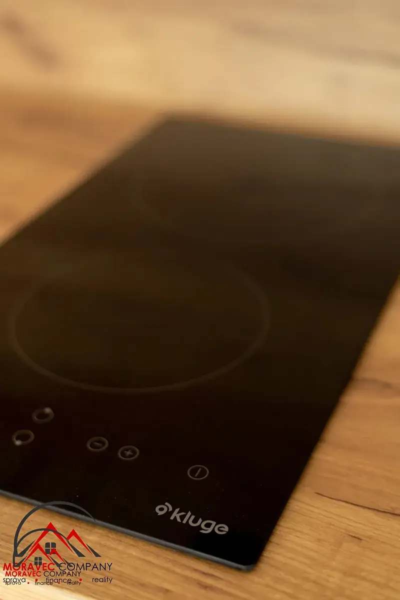 Vybavení bytu zahrnuje kuchyň s elektrickou troubou, indukční varnou deskou, digestoří, lednicí a mikrovlnnou troubou. Koupelna je vybavena sprchovým koutem, pračkou a WC. Ohřev vody zajišťuje elektrický bojler.