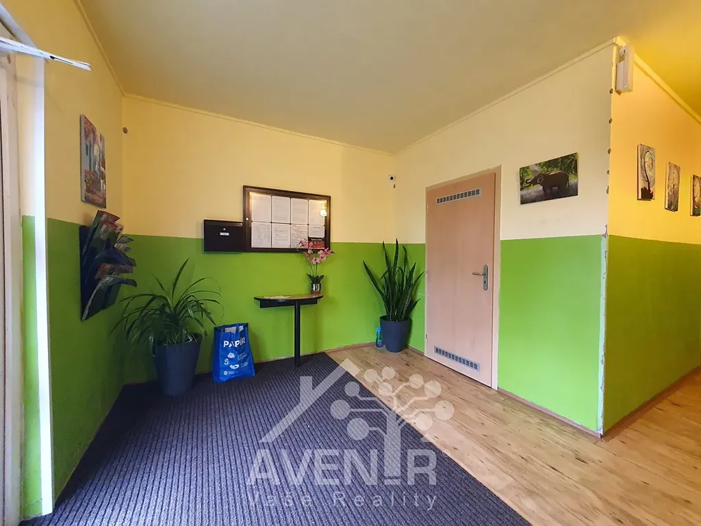 Dispoziční řešení: obývací pokoj s kuchyňským koutem, pokoj, chodba, koupelna s WC, sklepní kóje v přízemí budovy. V bytě jsou plastová okna, na podlaze linoleum. Byt je v původním stavu a potřebuje rekonstrukci. Přední i zadní vstup do domu je na čip, v domě kamerový systém, zrekonstruovaný výtah.