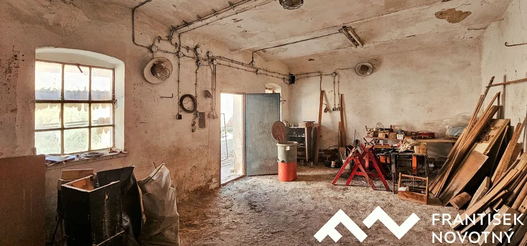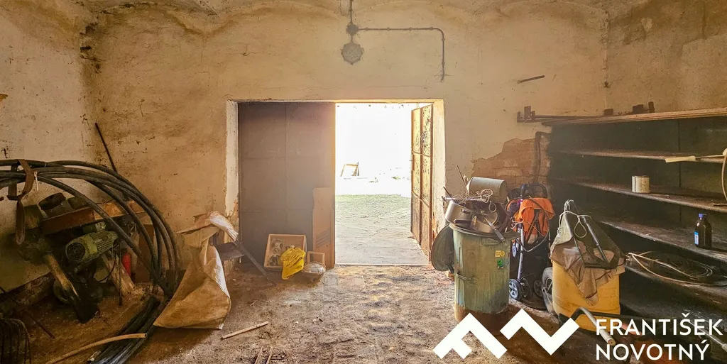 Uzavřený dvůr s průjezdem zajišťuje klid a soukromí. Součástí domu jsou hospodářské budovy s těmito místnostmi: garáž, dílna, černá kuchyně, chlívy, podzemní sklep a velká stodola s novou střechou – perfektní na parkování aut, hobby, nebo přestavbu k modernějšímu využití.