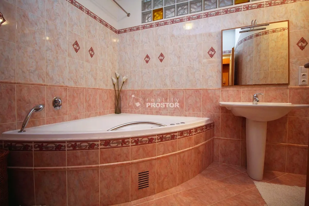 Koupelna je vybavena rohovou vanou i sprchovým koutem. Samostatná toaleta zvyšuje komfort bydlení. Ve vstupní chodbě se nachází praktické vestavěné skříně na míru, které poskytují dostatek úložného prostoru.