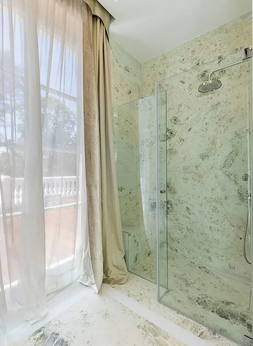 Silný dojem vytvářejí architektonické i interiérové prvky: reprezentativní vstup, přírodní kámen, podsvícená mramorová schodiště, kruhový prosklený výtah, kvalitní vestavěné prvky, promyšlené osvětlení, velká okna a přímé propojení interiéru se zahradou.