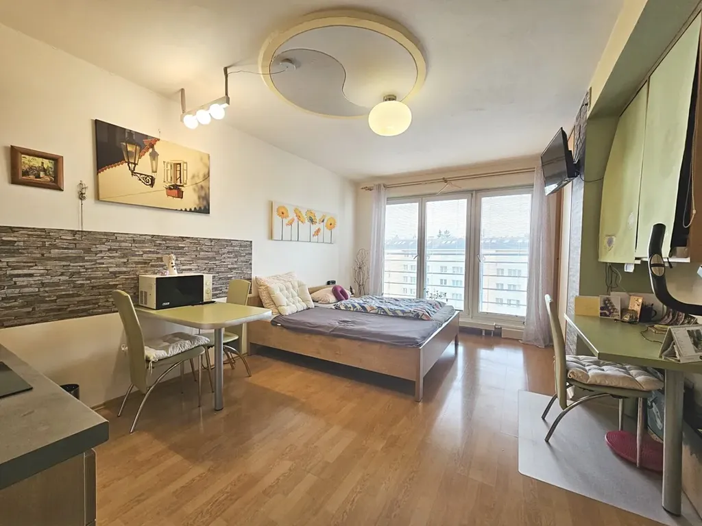 Nabízíme dlouhodobý pronájem zařízeného bytu 1+kk v 6. patře budovy z roku 2008 na Praze 5, Košíře, ulice Černochova.