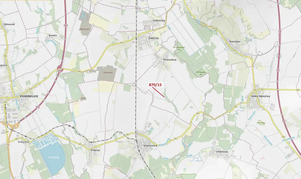 Lesní pozemky o výměře 60 m2, parcelní číslo 870/15, podíl 1/1, katastrální území Přísnotice, obec Přísnotice, obec s rozšířenou působností Židlochovice, okres Brno-venkov, Jihomoravský kraj.