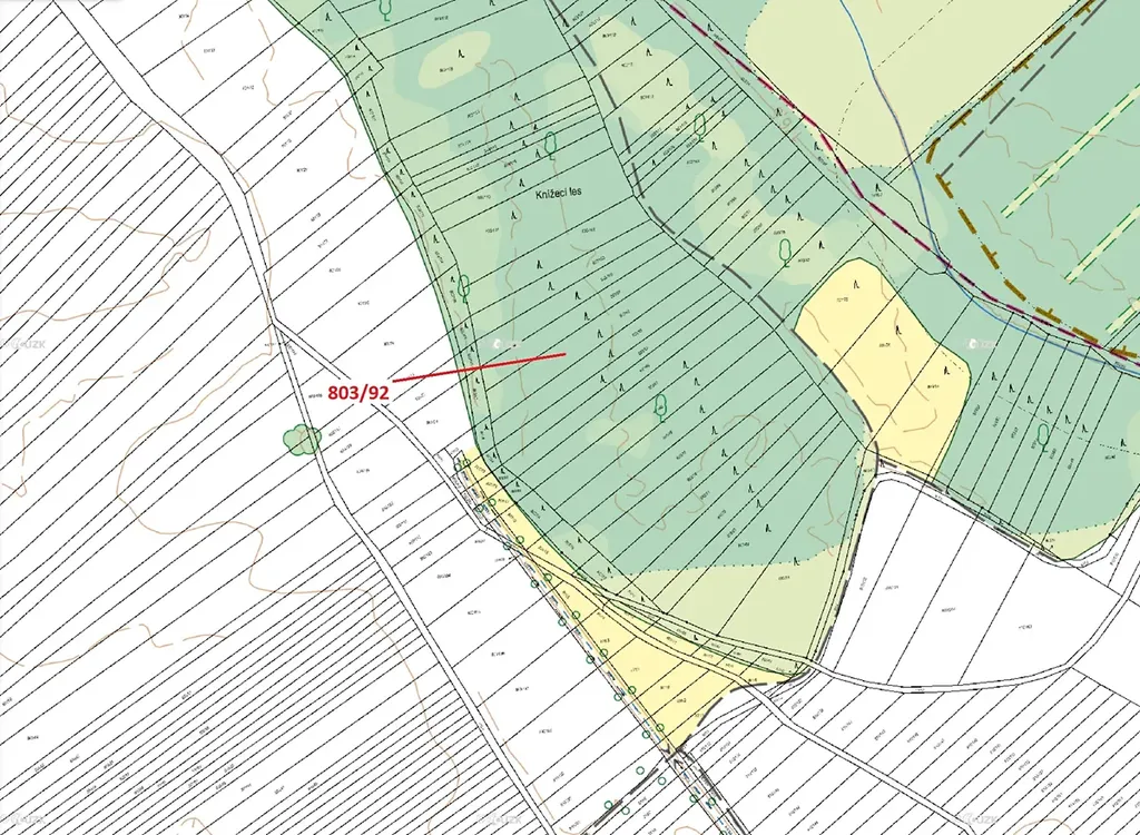 Lesní pozemky o výměře 1778 m2, parcelní číslo 803/92, podíl 1/1, katastrální území Přísnotice, obec Přísnotice, obec s rozšířenou působností Židlochovice, okres Brno-venkov, Jihomoravský kraj.