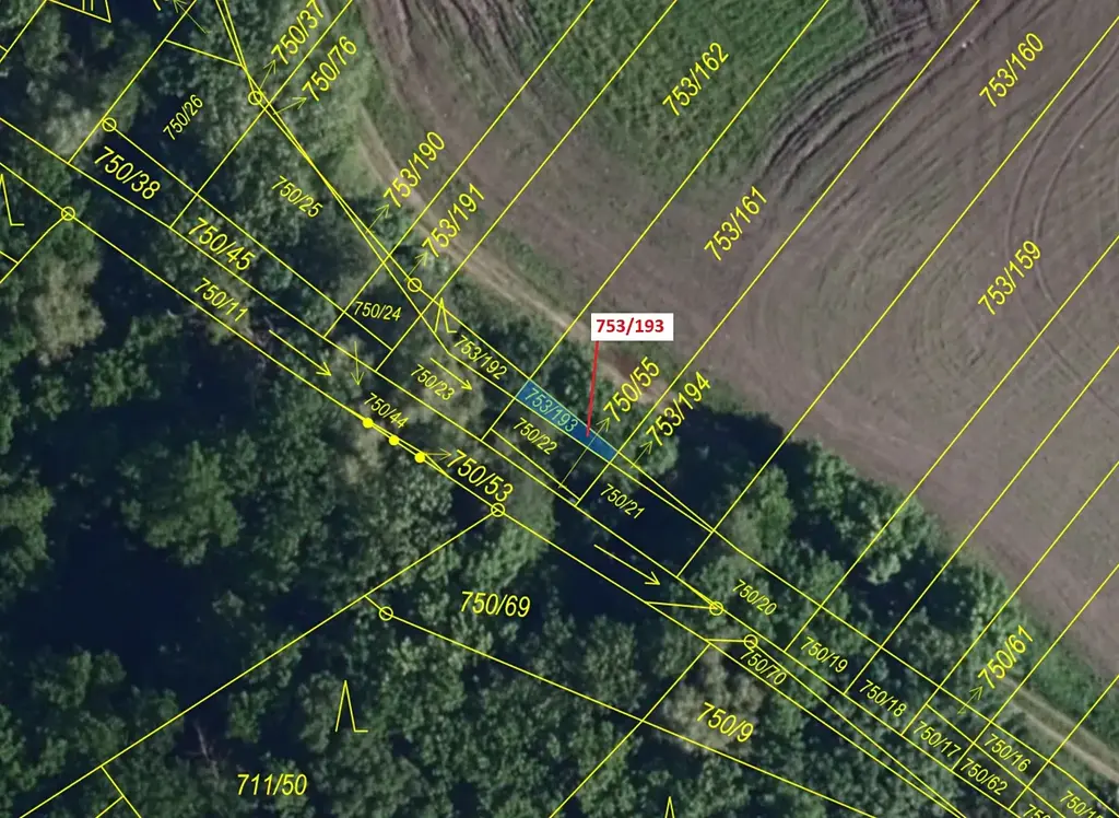 Lesní pozemek o výměře 14 m2, parcelní číslo 753/193, podíl 1/1, katastrální území Přísnotice, obec Přísnotice, obec s rozšířenou působností Židlochovice, okres Brno-venkov, Jihomoravský kraj.