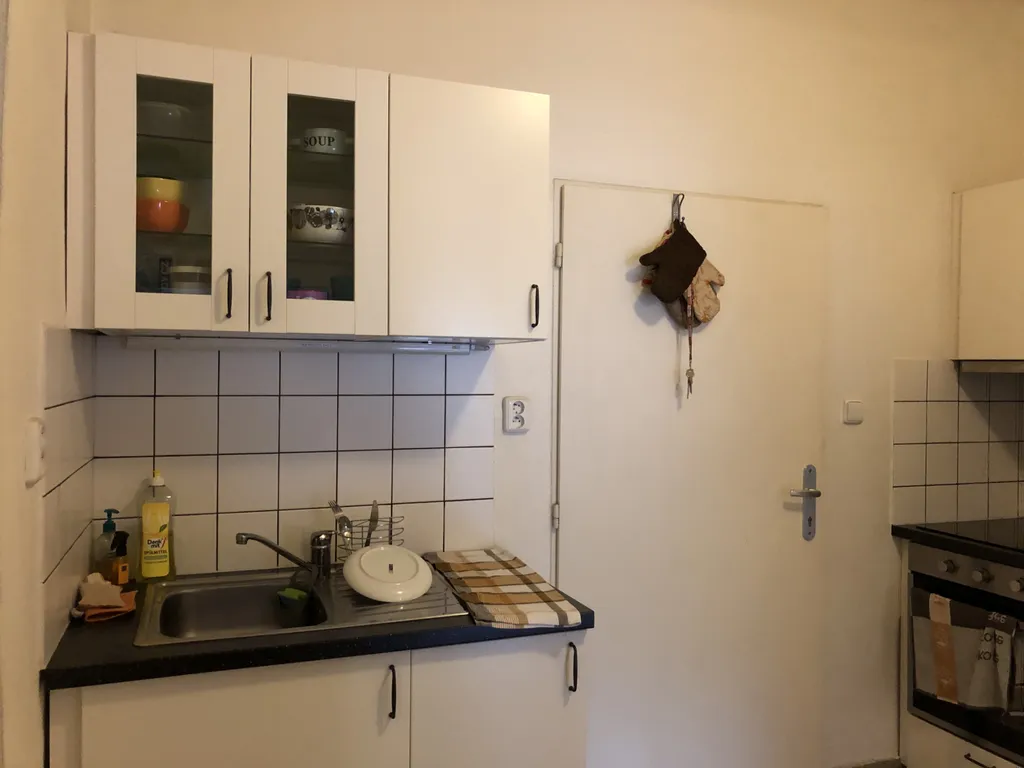 Součástí bytu je kuchyňský kout umístěný u vstupu na chodbě, vybavený lednicí, elektrickou varnou deskou, troubou a digestoří. Koupelna disponuje sprchovým koutem a pračkou, toaleta je samostatná. K dispozici je také komora pro uskladnění věcí.