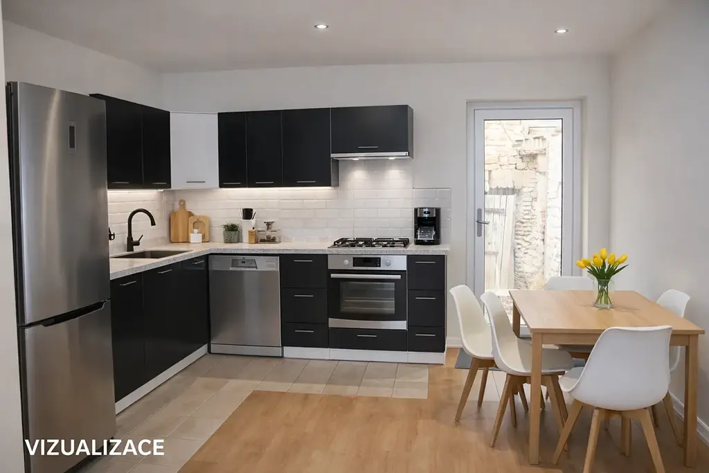 Součástí domu je menší dvorek, ideální pro posezení, grilování nebo dětské hry. Velkým bonusem jsou dva klenuté sklepy, které přímo vybízejí k využití jako vinný sklípek, sklad nebo stylové místo pro setkávání s přáteli.